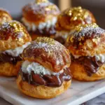 Creating Gold-Dusted Chocolate Profiteroles is more than just baking; it’s about crafting moments of joy. Each bite transports you to a world of indulgence, where light pastry meets rich chocolate cream, all adorned with a touch of gold. Whether you’re celebrating a special occasion or simply treating yourself, these delightful puffs bring a sense of luxury to your table. I hope you find as much joy in making and sharing these treats as I do. So, roll up your sleeves, embrace the process, and let your kitchen become a haven of sweet memories!