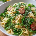 Picture this: al dente pasta, perfectly kissed by the tangy brightness of freshly squeezed lemon juice, entwined with tender, peppery arugula greens, and vibrant cherry tomatoes that burst with juicy sweetness. Every bite offers a harmonious blend of flavors and textures; the creaminess of the Parmesan cheese balances the zesty dressing, while the fresh crunch of each ingredient invigorates your palate. Whether you enjoy it as a light lunch or serve it at a lively gathering, this salad transforms any occasion into a celebration.