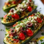 The aroma of baked zucchini wafts through the air, its earthy scent mingling with the bright, tangy notes of fresh tomatoes and olives. As you step into your kitchen, anticipation swells. The vibrant green of the zucchinis glistens, waiting to embrace the savory filling that promises to awaken your taste buds. Each bite will reveal a medley of flavors—richly creamy feta, crunchy olives, and the subtle warmth of oregano—creating a dish that feels both comforting and refreshingly wholesome. With each stuffed zucchini boat, you embark on a culinary journey to the Mediterranean, where fresh ingredients and sun-kissed flavors reign supreme.