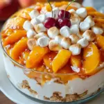 Indulging in the sweet, sun-kissed flavors of summer always brings a smile; just think of sun-ripened peaches, the unmistakable scent of vanilla wafting through the air, and the creamy embrace of cheesecake mingling with fresh fruit. Picture yourself at a picnic on a warm afternoon—a gentle breeze ruffles the leaves above, and the laughter of friends fills the air. You reach for a spoonful of peach cobbler cheesecake fruit salad, and with each bite, you experience the creamy richness of velvety cheesecake blending beautifully with the juicy sweetness of peaches and the delightful crunch of nuts. It’s a symphony of textures and tastes that transports you straight to a sun-drenched orchard.