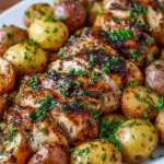 A flavorful and easy weeknight meal featuring marinated chicken breasts and baby potatoes roasted to perfection.