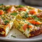 A flavorful frittata featuring smoked salmon and fresh dill, perfect for a hearty breakfast or brunch.